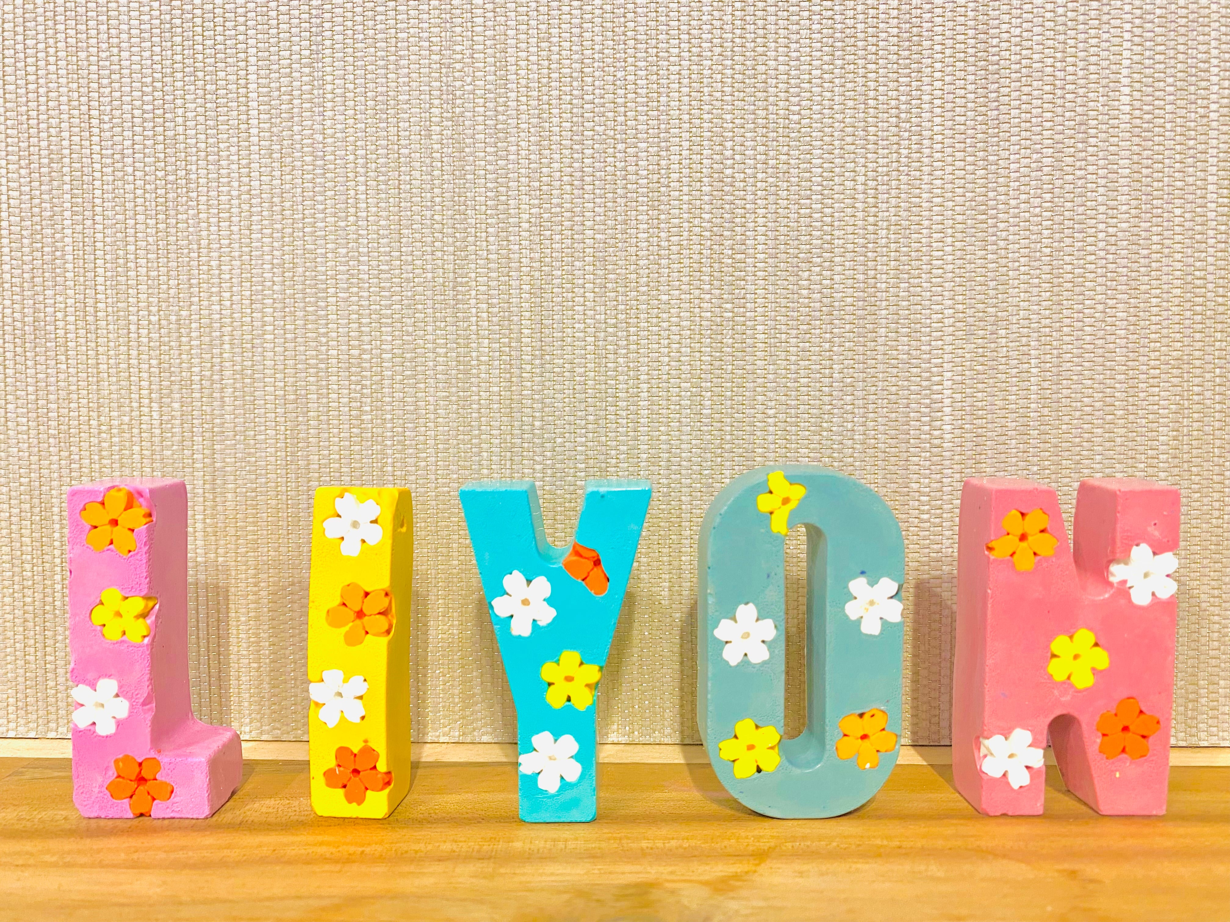 単色カラーにお花を入れた Liyonオリジナルデザイン!!!(2〜5文字) かわいいイメージが好きな方 赤ちゃんへの贈り物にオススメです♪ ベースのカラーはお任せになりますが 寒色でまとめたい。暖色でまとめたい ベースは全て同じ色でお花の色を変えたい! などご要望あれば備考欄にご記入お願いいたします 5文字以下のお名前は5文字になる様にモチーフクレヨンをランダムでお入れします☆ 6文字以降は1文字+400円となります 文字数の選択お忘れない様お気をつけください♪